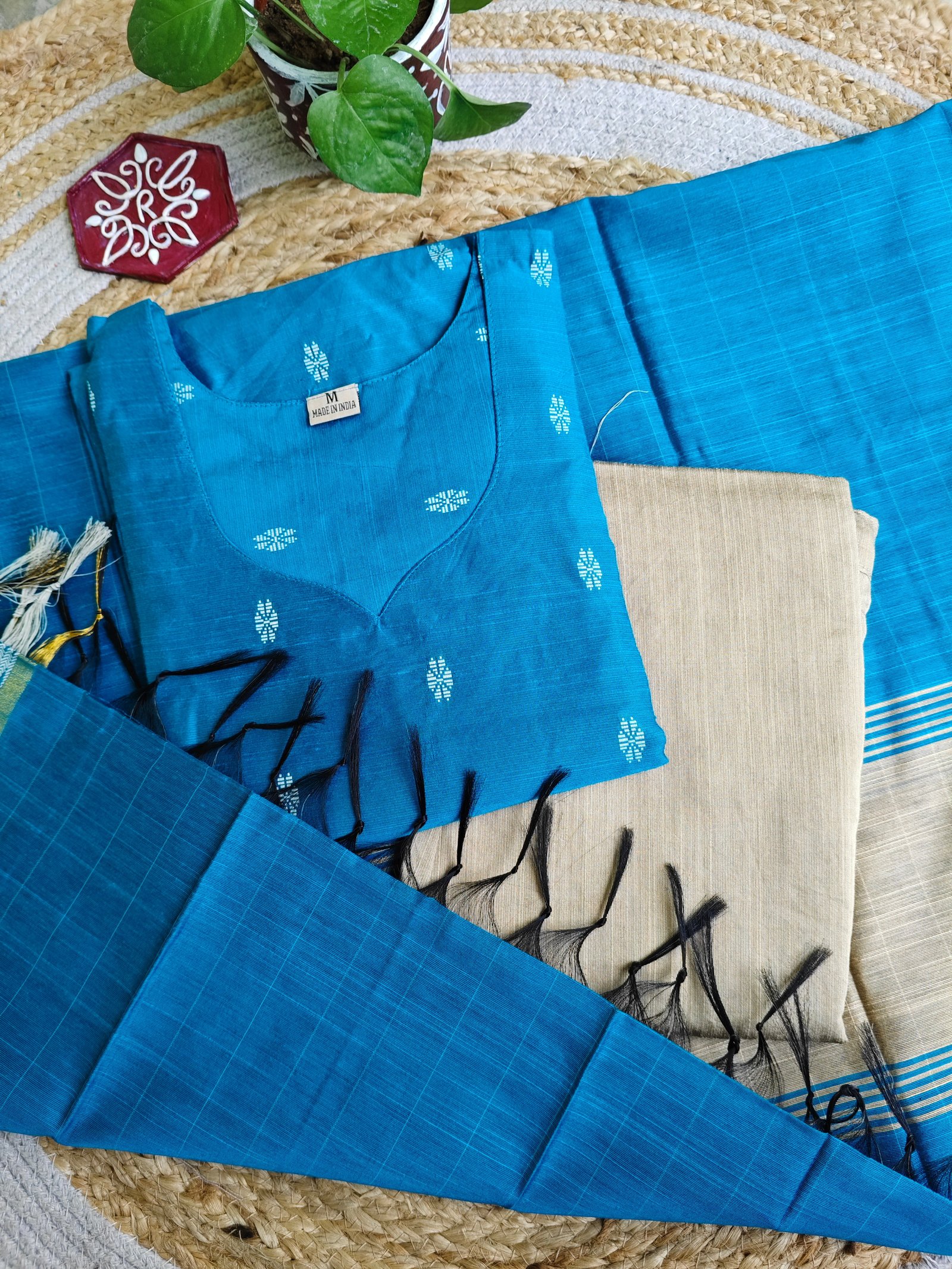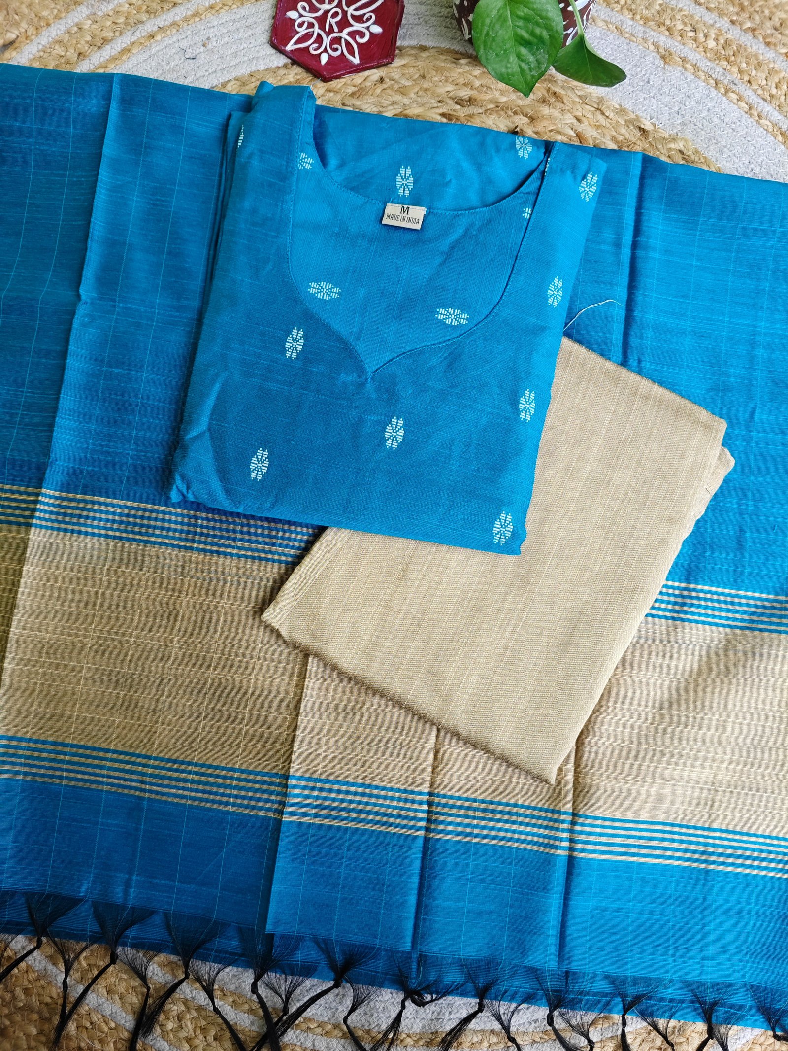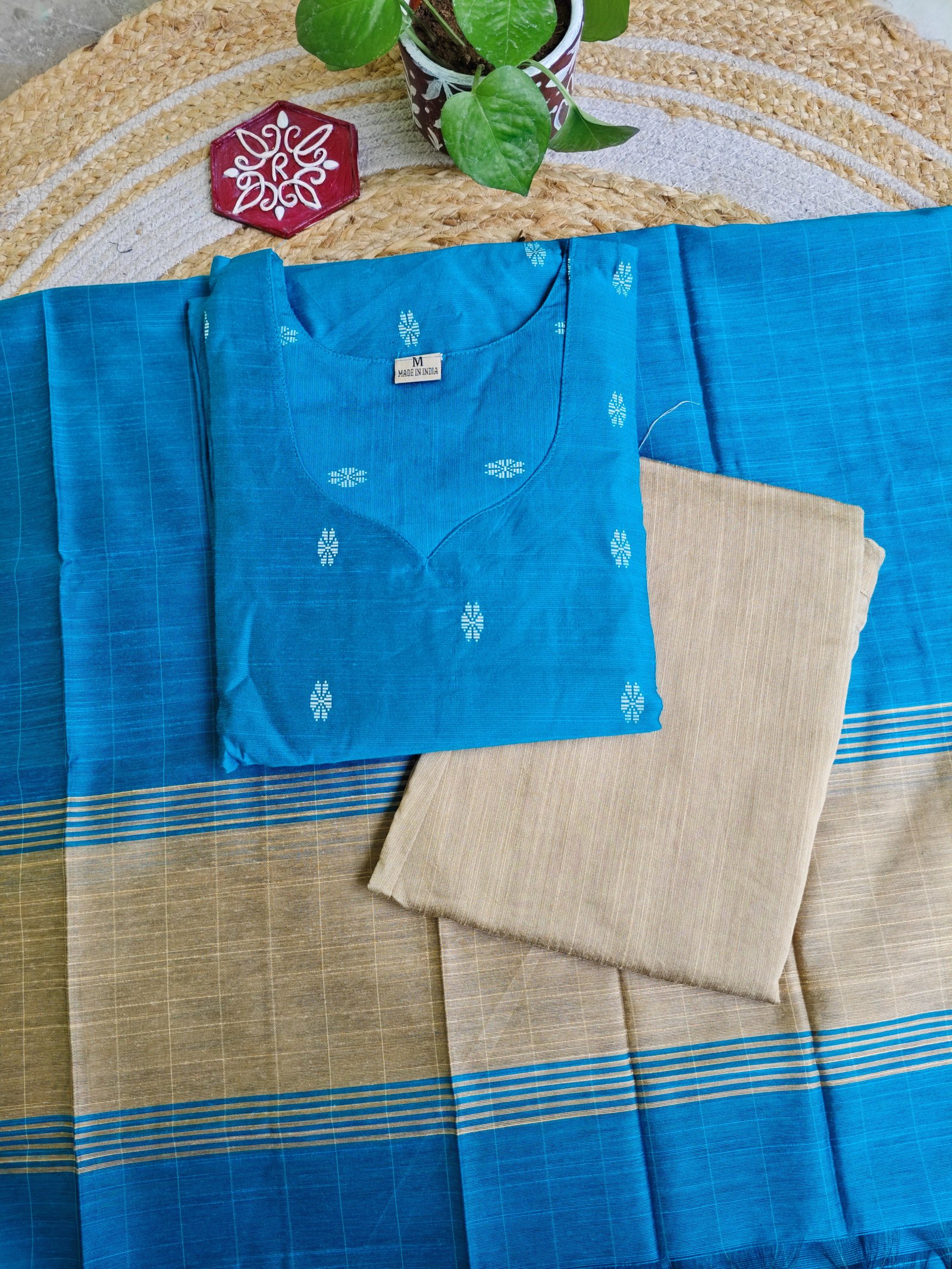 Premium Raw Silk Kurti With Kalamkari Silk Dupatta