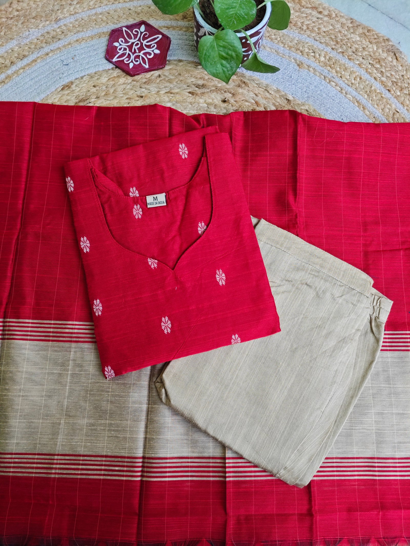 Premium Raw Silk Kurti With Kalamkari Silk Dupatta